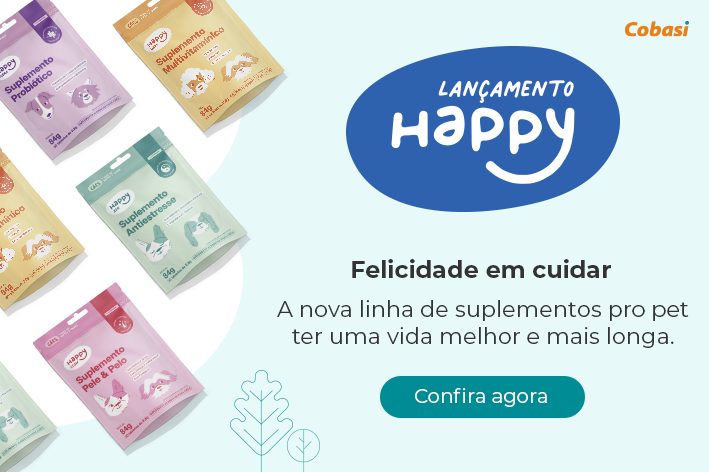 A linha completa de suplementos Happy já está disponível em todo o Brasil, nas lojas físicas, site e aplicativo da Cobasi e Petz.